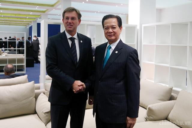 PM Dung and Slovenian PM Miroslav Cerar. Photo: VGP.