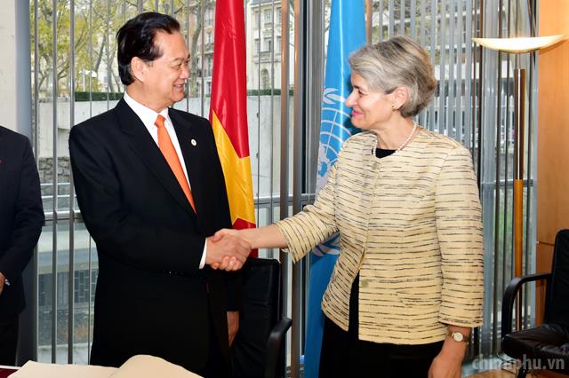 PM Dung and UNESCO President Irina Bokova. Photo: VGP.