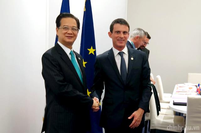 PM Dung and French PM Manuel Valls ahead of their talks in Paris on the sidelines of the UN climate Summit. Photo: VGP