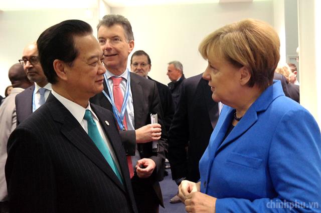 PM Dung meets with German Chancellor Angela Merkel. Photo: VGP.