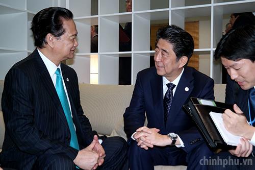 PM Dung and Japanese counterpart Shinzo Abe. Photo: VGP.