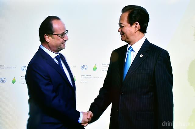 French President Francois Hollande welcomes PM Dung to the Paris climate summit. Photo: VGP.
