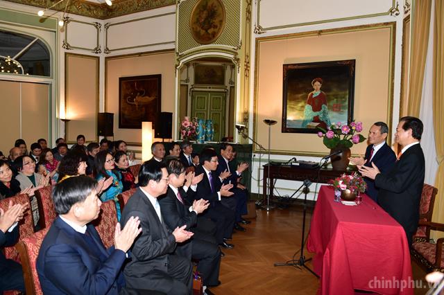 PM Dung meets overseas Vietnamese and Embassy staff in Paris. Photo: VGP.