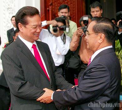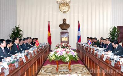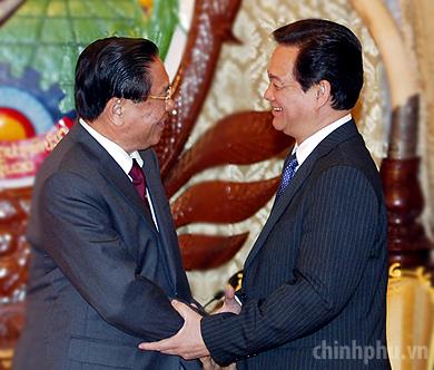 PM Nguyễn Tấn Dũng meets with General Secretary of the Lao Peoples Revolutionary Party and State President of the Lao Peoples Democratic Republic, Chumaly Saynhason