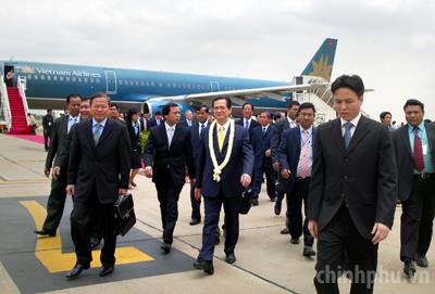 Nguyễn Tấn Dũng and his entourage arrive in Phnom Penh, beginning his official