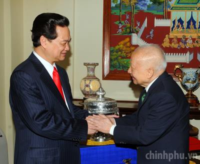 PM Nguyễn Tấn Dũng meets with Cambodia’s former King Norodom
