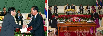 PM Nguyễn Tấn Dũng and PM Hunsen witness the signing ceremony of
