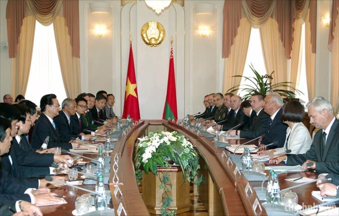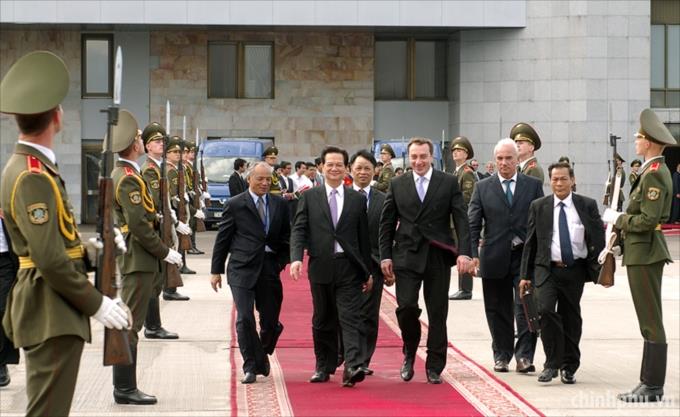 VGP - Vietnamese PM Nguyen Tan Dung and his entourage on May 15 (local time) arrived in Minsk, starting an official tour to Belarus at the invitation of his Belarusian counterpart Mikhail Myiasnikovich.