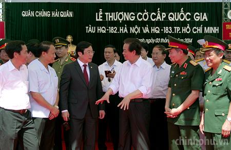 PM Nguyen Tan Dung and Deputy PM Pham Binh Minh on March 3 attended the flag-raising ceremony for the first two submarines in the central province of Khanh Hoa.