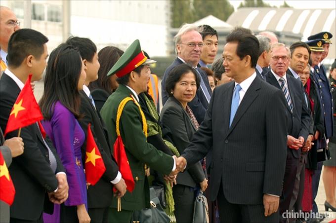VGP - PM Nguyen Tan Dung arrived in Brussels, starting his official visit to Belgium at the invitation of PM Charles Michel.