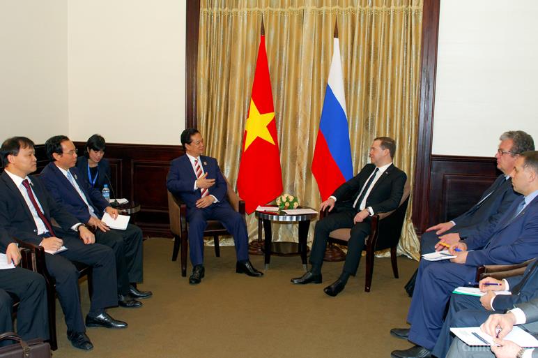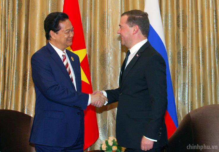 PM Nguyen Tan Dung and Russian PM Medvedev, Nay Pyi Taw, Myanmar, November 13, 2014: Photo: VGP