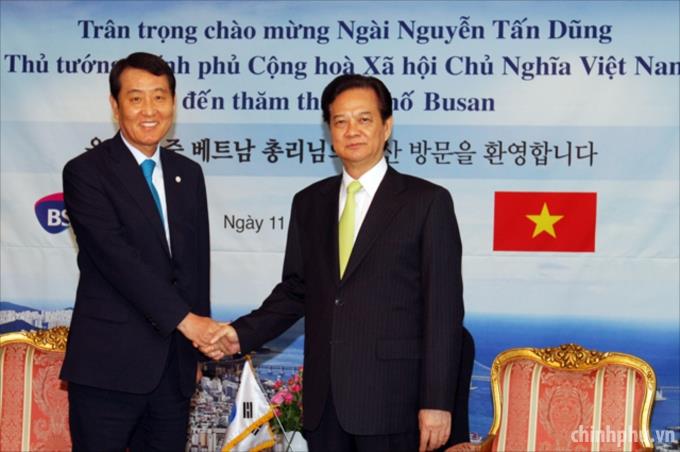PM meets with Busan Mayor Suh Byung-soo. Photo: VGP