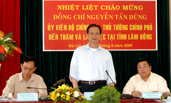 PM Nguyễn Tấn Dũng, at his working session with leaders of the Central Highlands province of Lâm Đồng, August 19, stressed that the province should make full use of its advantages to promote socio-economic development - Photo: VGP