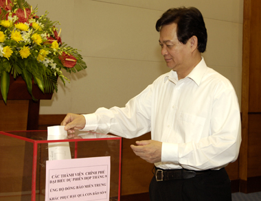 PM Nguyễn Tấn Dũng and all the Cabinet’s members contribute part of salaries in support of the victims of tropical storm Ketsana – Photo: VGP