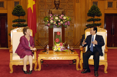 PM Nguyễn Tấn Dũng (R) and Ambassadress Heather Mhairi Riddle (L), Hà Nội, September 30, 2009 – Photo: VGP