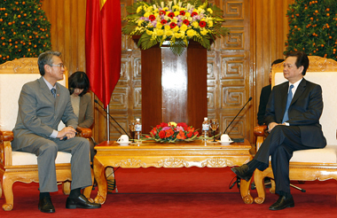 PM Nguyễn Tấn Dũng (R) and RoK’s Ambassador to Việt Nam Park Suk-hwan, Hà Nội, February 8, 2011 – Photo: VGP