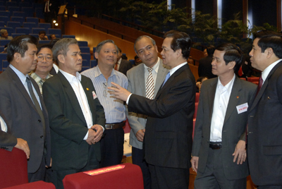 PM Nguyễn Tấn Dũng exchanges views with delegates to the meeting, Hà Nội, December 31, 2010 – Photo: VGP