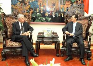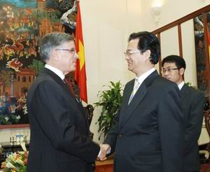 VGP – Starting his 4-day working visit to Việt Nam to review the development of Việt Nam–US relationship and discuss measures of strengthening bilateral relations and cooperation, US Deputy Secretary of State John Negroponte met PM Nguyễn Tấn Dũng and had some working sessions with leaders of the ministries of Foreign Affairs, Education and Training, National Defense, and Public Security on September 11.