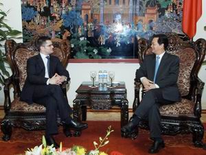 VNGOP – PM Nguyễn Tấn Dũng gave a reception on March 17 to Deputy PM, Finance Minister of the Republic of Ireland Brian Cowen who is paying a working visit to Việt Nam.