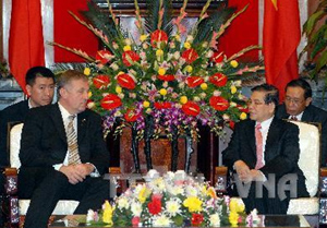 VNGOP – In the talks on March 10 with PM Nguyễn Tấn Dũng and his entourage in Dublin, Irish Taoiseach (Prime Minister) Bertie Ahern affirmed his willingness to share Việt Nam experience in economic development, especially finance, banking and attracting foreign investors. He also pledged to support Việt Nam’s industrialization and modernization.